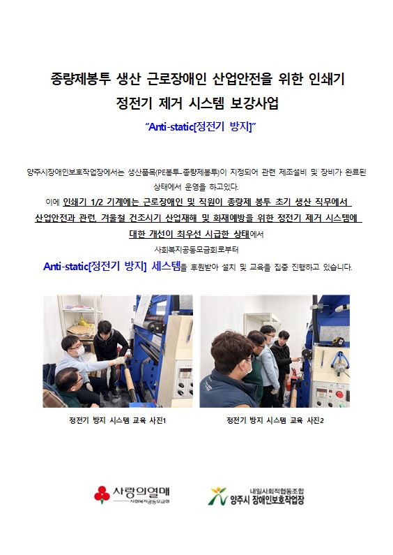 (경기 사회복지공동모금회 지정후원사업) 종량제봉투 생산 근로장애인 산업안전을 위한 인쇄기 정전기 제거 시스템 보강사업 “An…